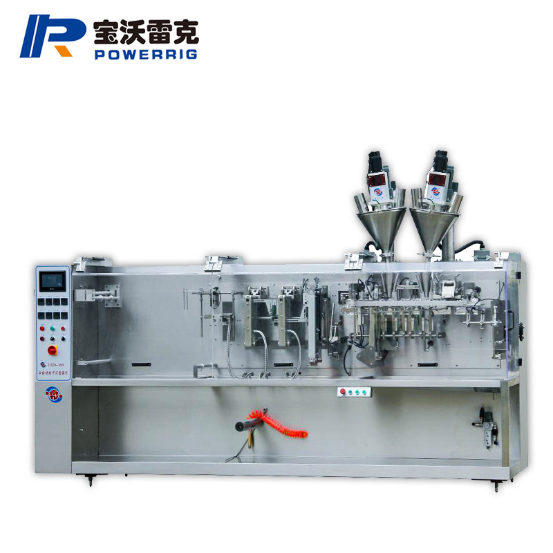 The  machine controled by PLC system, it can realize the packaging of powder, granules, liquid and viscous liquid when changing packing heads. It can do the three-side and four-side sealing easily. Can choose the function of double-bag or single -bag packing . The parts contacting with the material adopt 316 high-quality stainless steel, the other parts use the 304 stainless steel. The whole machine accords to the GMP requirements, easy to disassemble and clean.